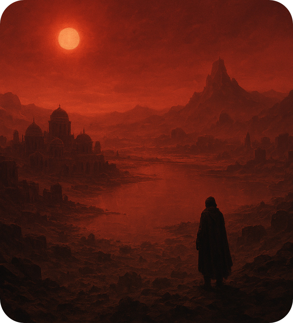 A Catástrofe do Vale da Sombra, como ficou conhecida, começou não com um impacto bruto, mas com uma perturbação na dança celeste. Kepler-1571, em sua órbita notavelmente elíptica ao redor de sua estrela, sentiu a influência gravitacional de Harmonia, sua lua companheira. Em um raro “alinhamento cósmico”, uma ressonância gravitacional, como um acorde dissonante na sinfonia celeste, intensificou as forças de maré sobre Kepler-1571 durante seu periélio, culminando em um tremor planetário que abalou as cidades Somnians. Na aurora seguinte, sob um céu agora tingido de presságios, o explorador Lyra, com o coração apertado, partiu rumo às planícies próximas ao Lago Celeste, outrora um mosaico vibrante de comunidades Somnians e centros de saber. O que Lyra encontrou, porém, foi um sepulcro planetário.